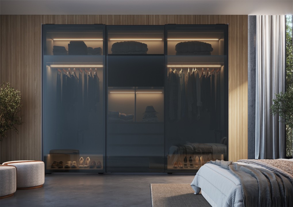 Linha de perfis para a fabricação de portas de armários. Os perfis dessa linha são mais estruturados para promover a função anti empeno, sem a necessidade do uso de desempenadores.