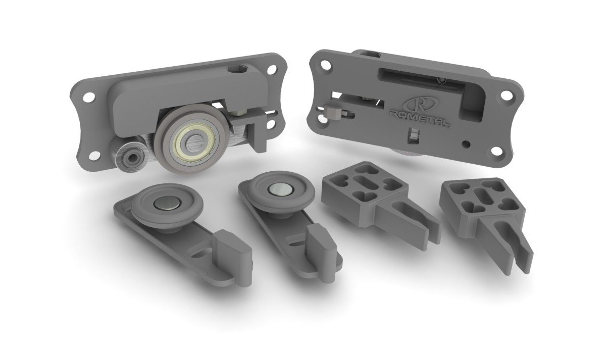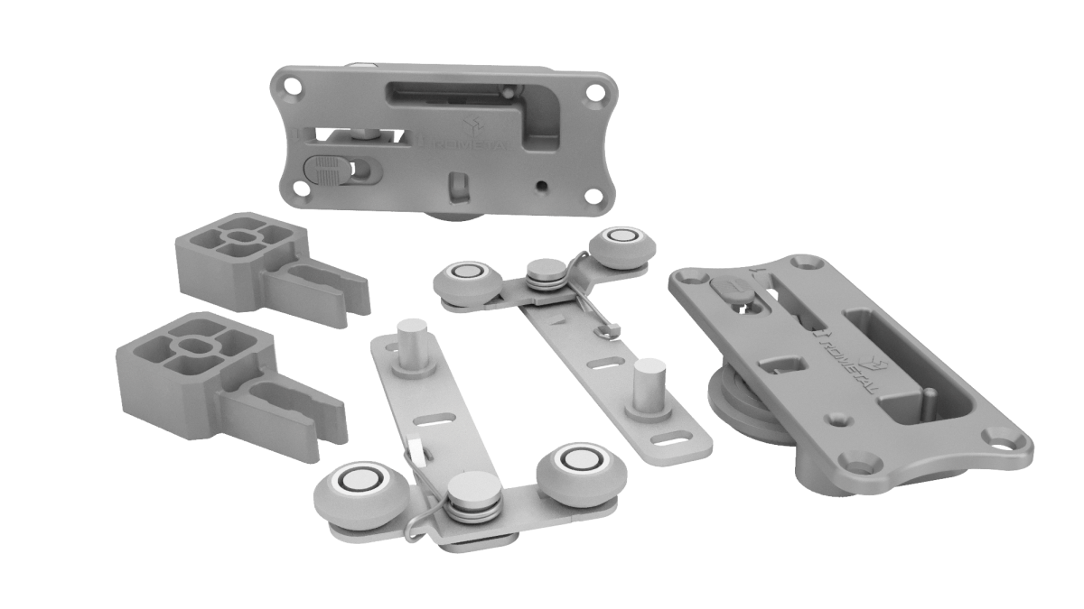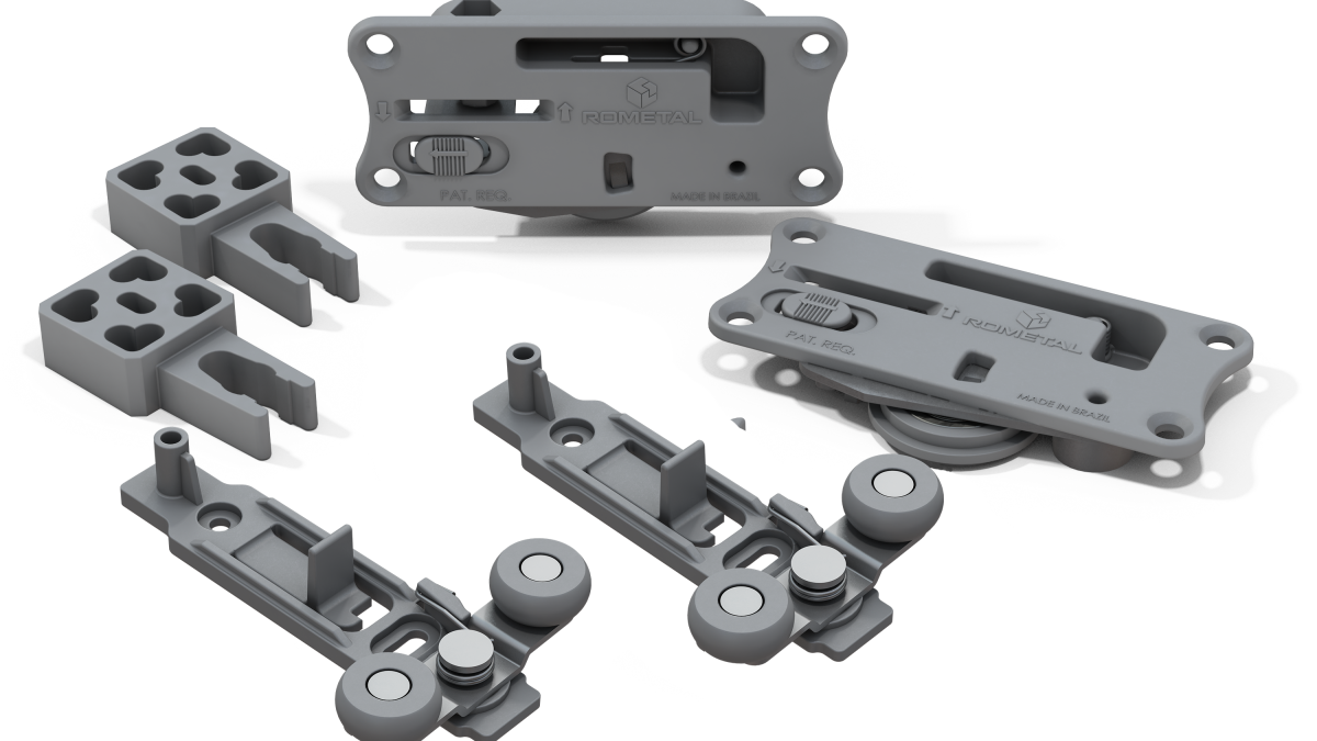 Sistema com molas exclusivas e modernas que impedem o descarrilamento das portas. Possui trava frontal que, quando movimentada, tem função de acionamento ou travamento das molas.