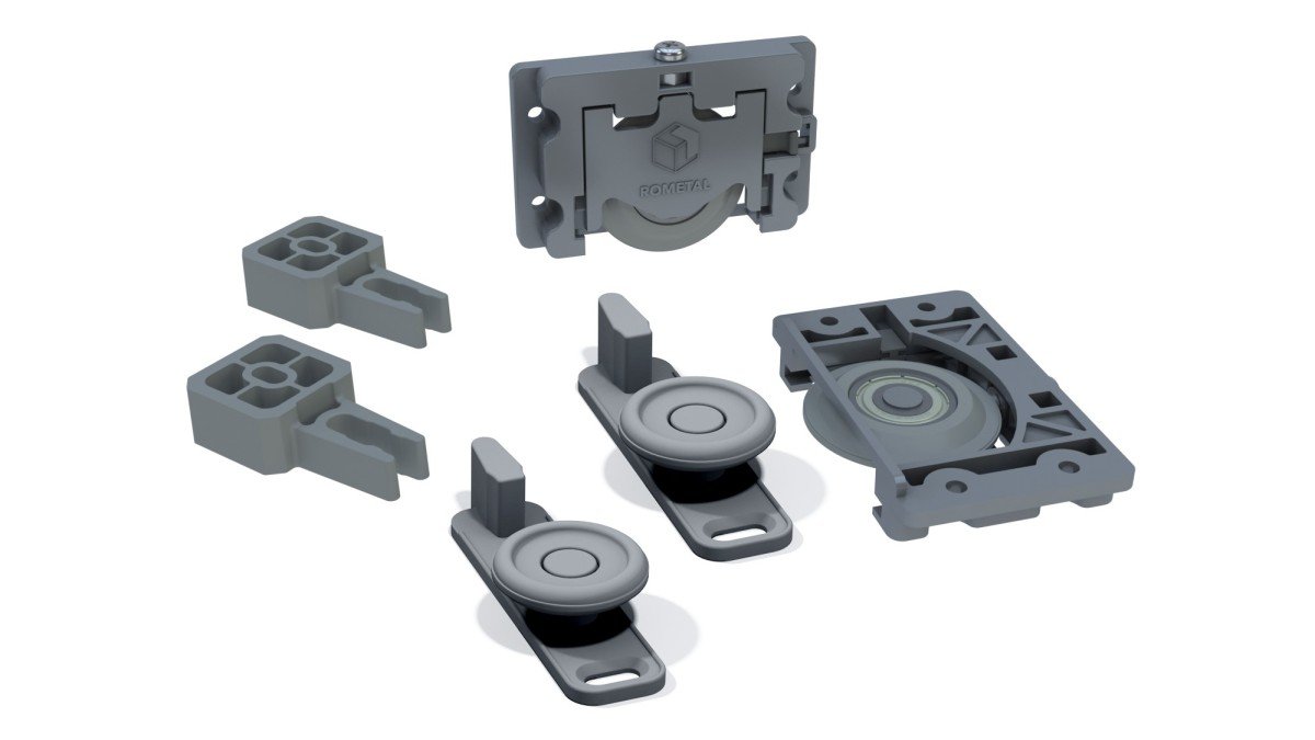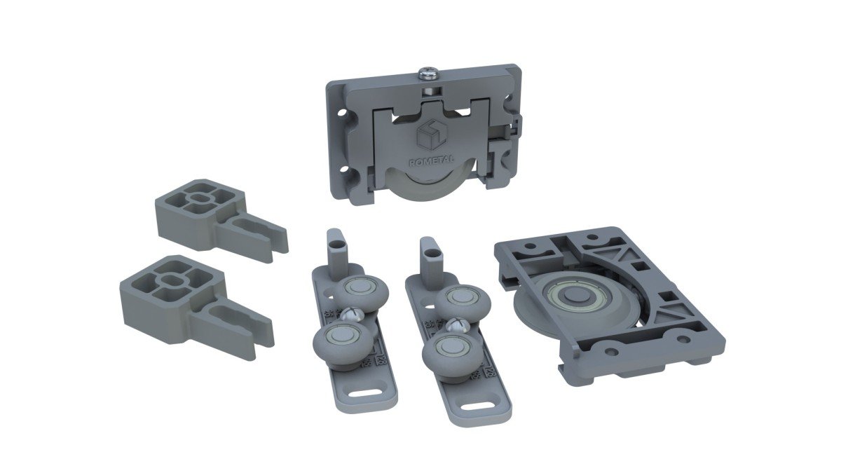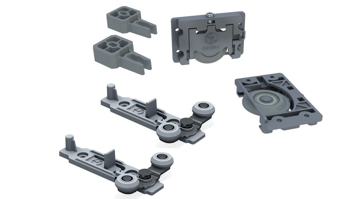 Sistema com bom acabamento, muito utilizado em armários de grande porte. Possui sistema de molas antidescarrilamento. Dispensa usinagem na porta do móvel.