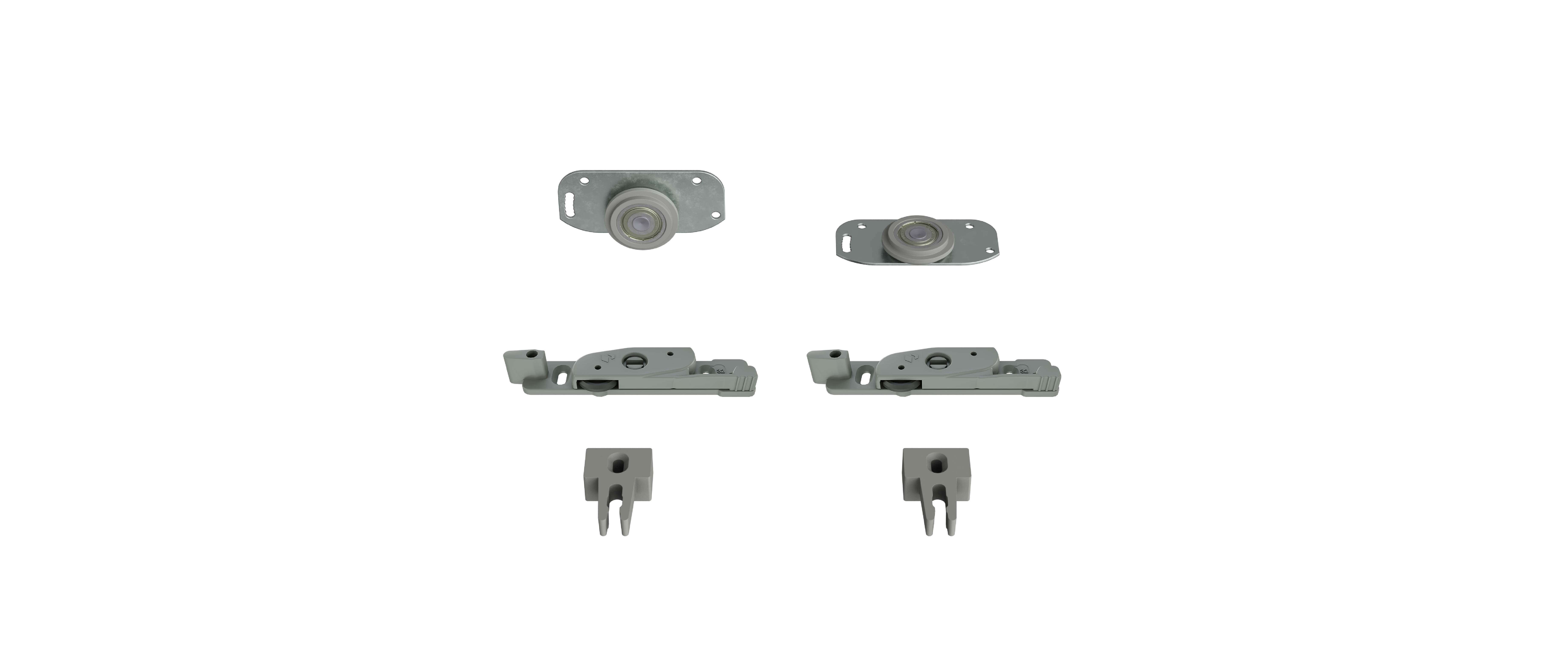 Possui regulagem de altura na parte frontal, através de oblongo lateral. O sistema pode ser utilizado sobreposto ou embutido na porta do móvel.