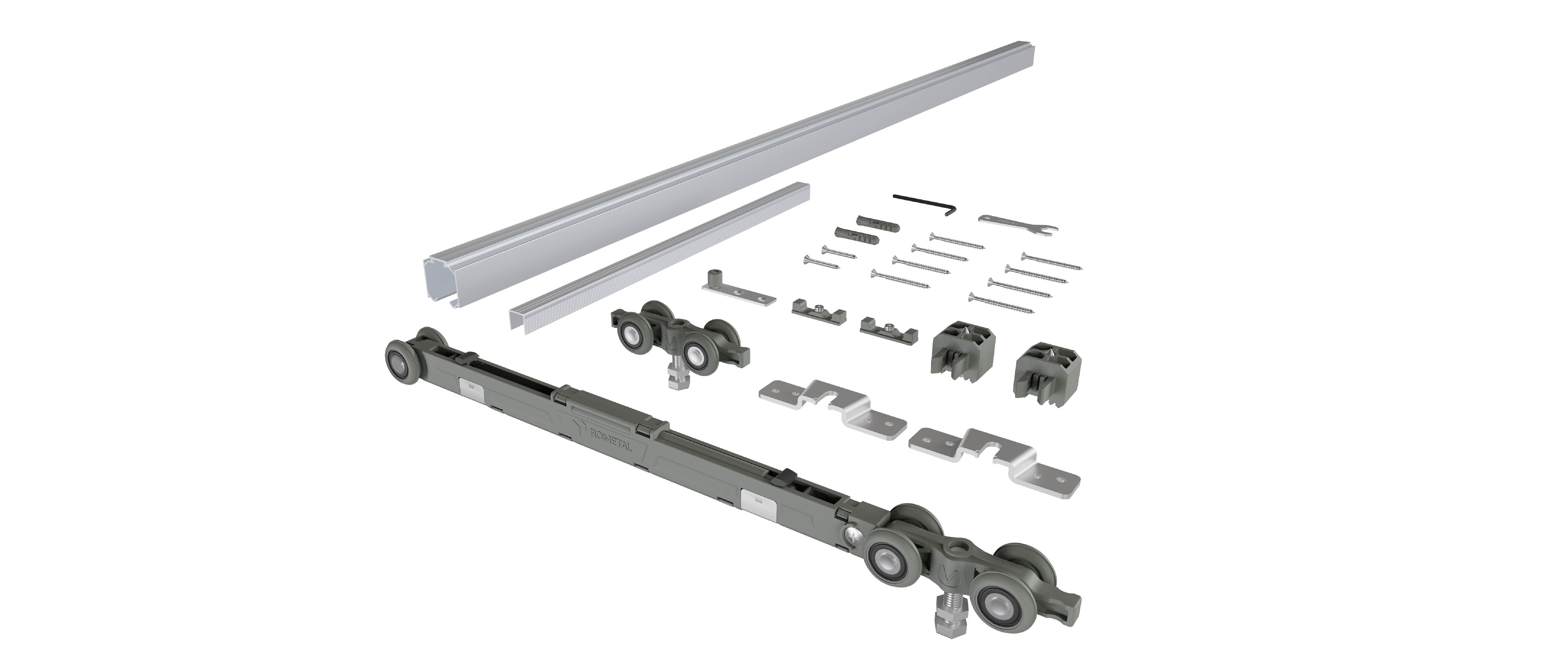 Sistema com roda convexa e design simétrico, que simplifica a montagem.