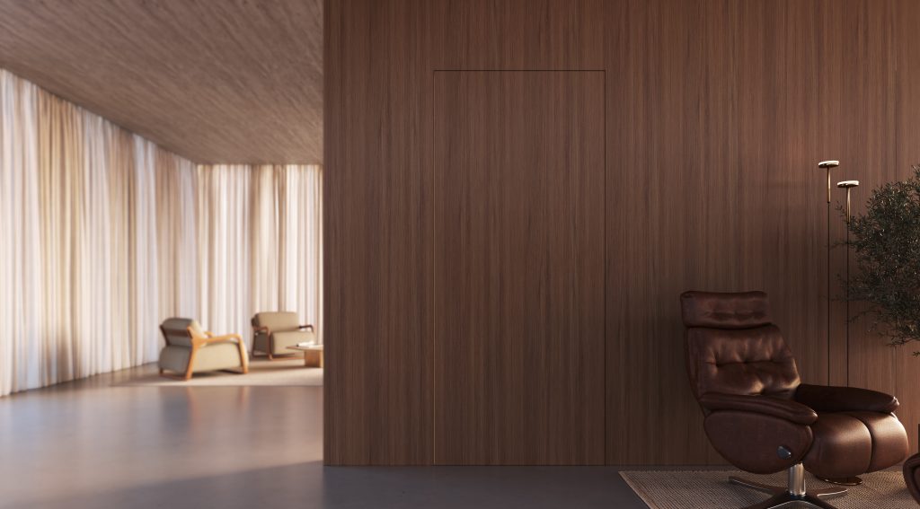 Seu diferencial está nos detalhes: design slim que valoriza o espaço, funcionamento mecânico ou automático, instalação intuitiva e visual final sofisticado. Ele é perfeito para quem busca elegância, eficiência e modernidade em portas de passagem, seja para integrar ambientes, esconder espaços como closets ou escritórios, ou criar um efeito mimetizado com a parede.