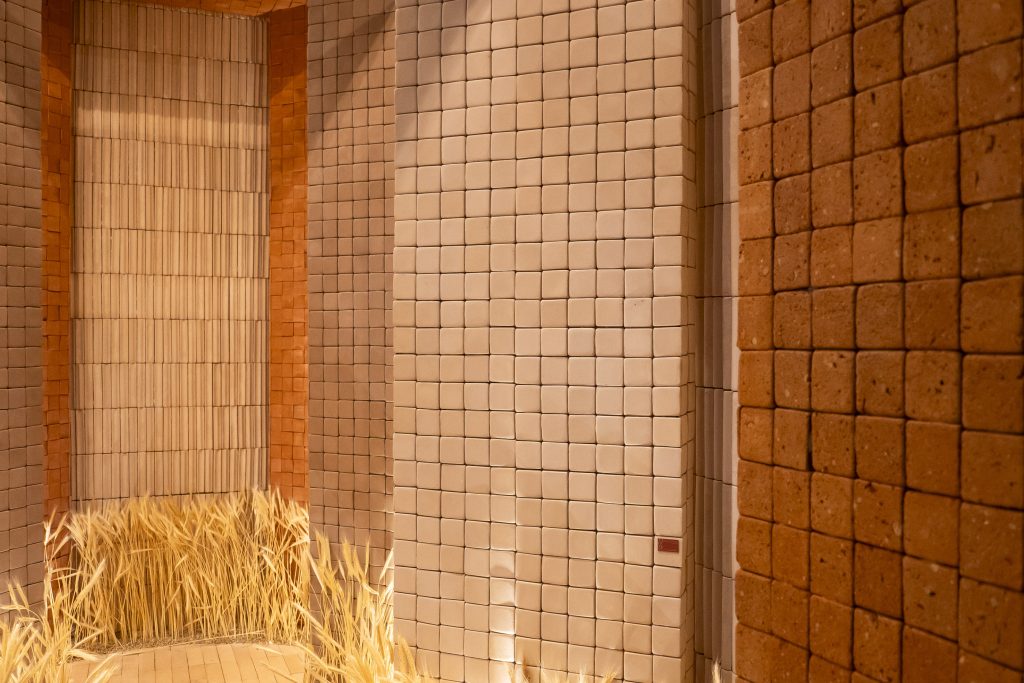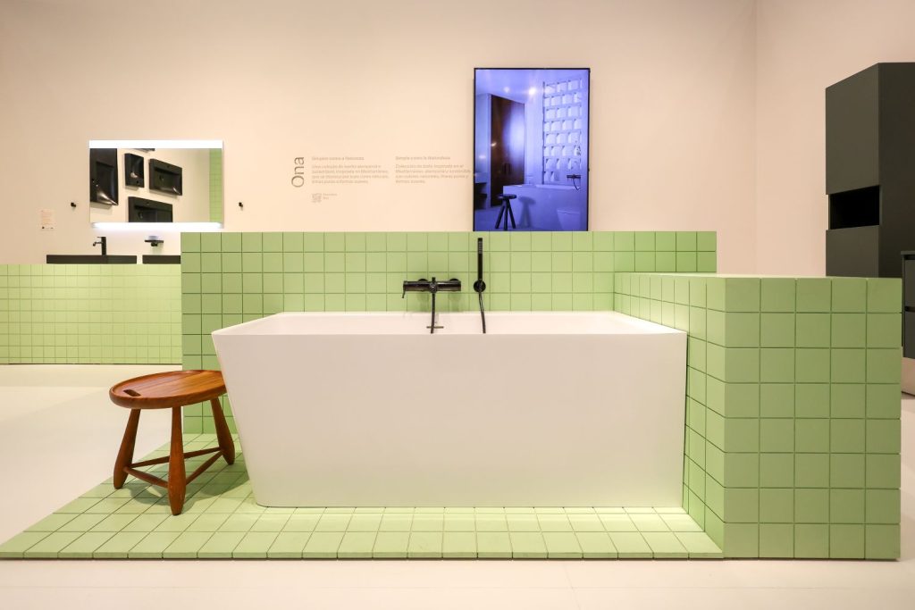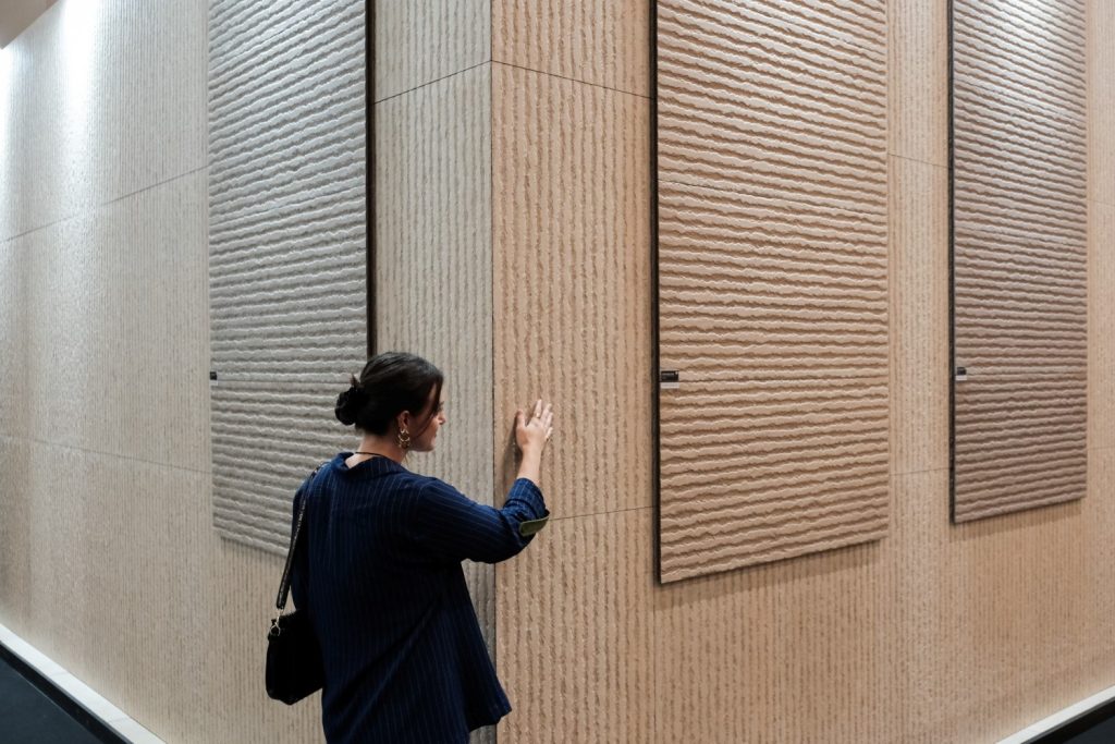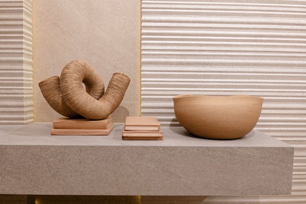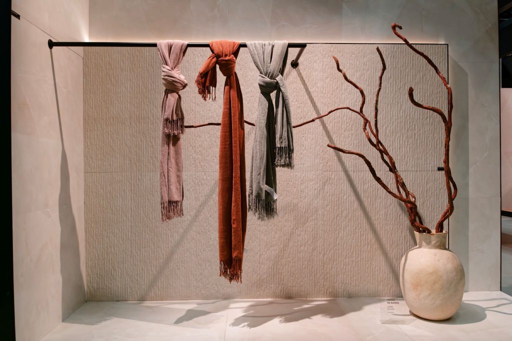 Revestimentos com relevos, profundidade e textura foram um dos grandes destaques da feira. As marcas apresentaram superfícies que estimulam o tato e criam ambientes mais envolventes e sofisticados.