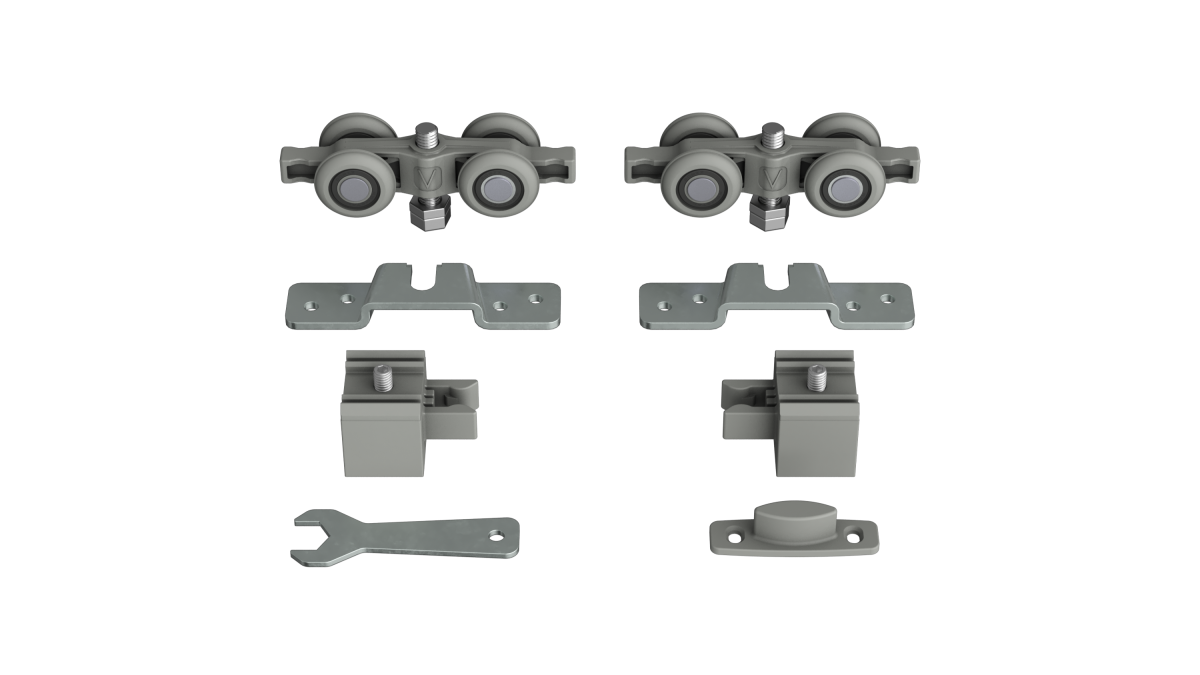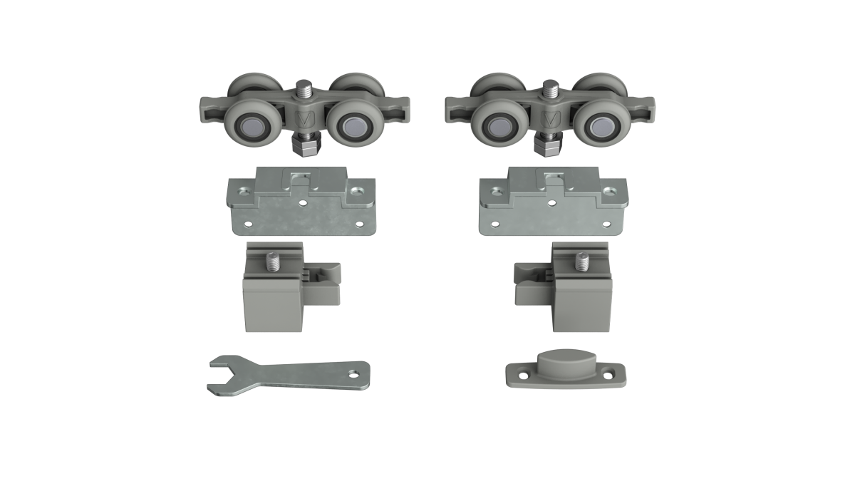 Sistema com roda convexa e design simétrico, que simplifica a montagem.