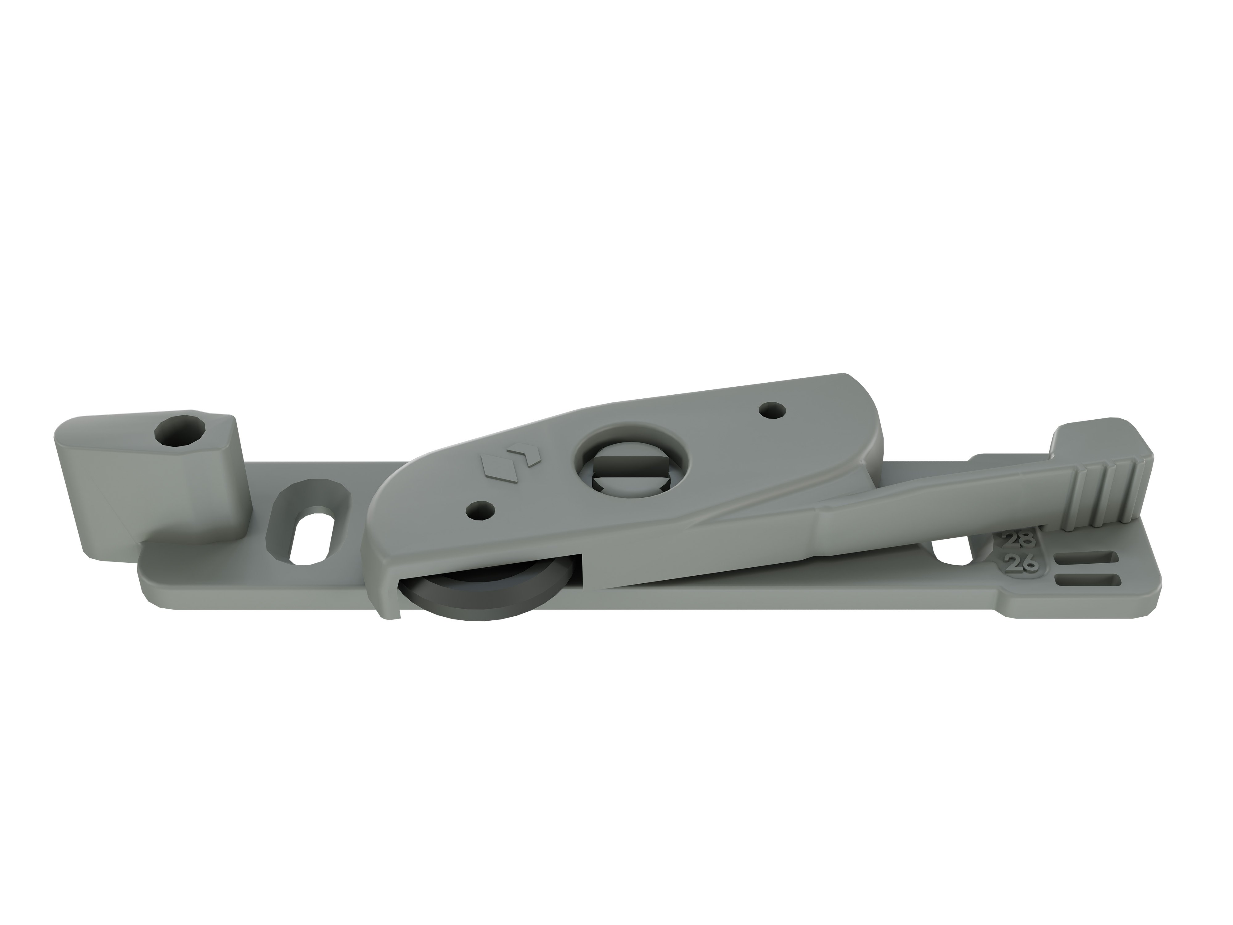 A Guia Flex Prime é uma guia superior, que pode ser aplicada em trilhos de 26mm a 32mm. Os rodízios funcionam simetricamente com um único ajuste para ambos, o que torna a regulagem muito mais fácil.