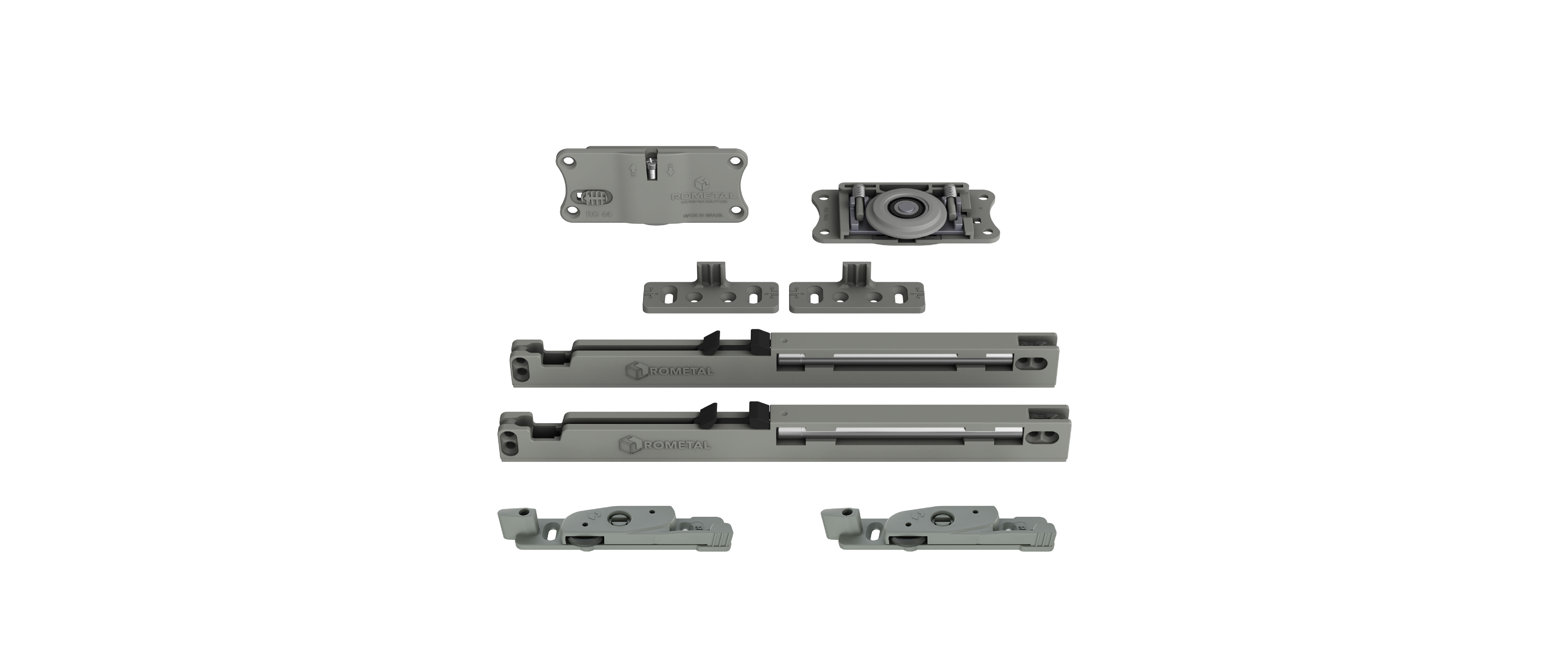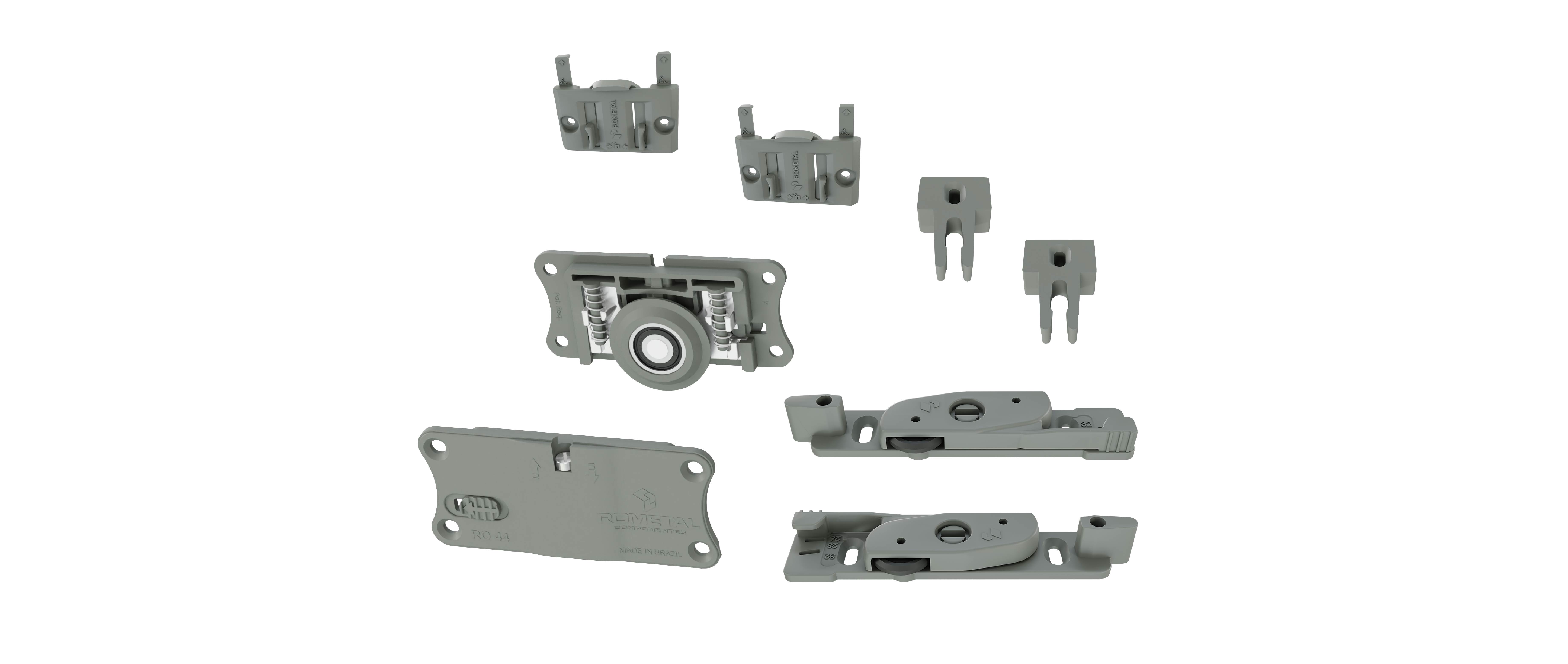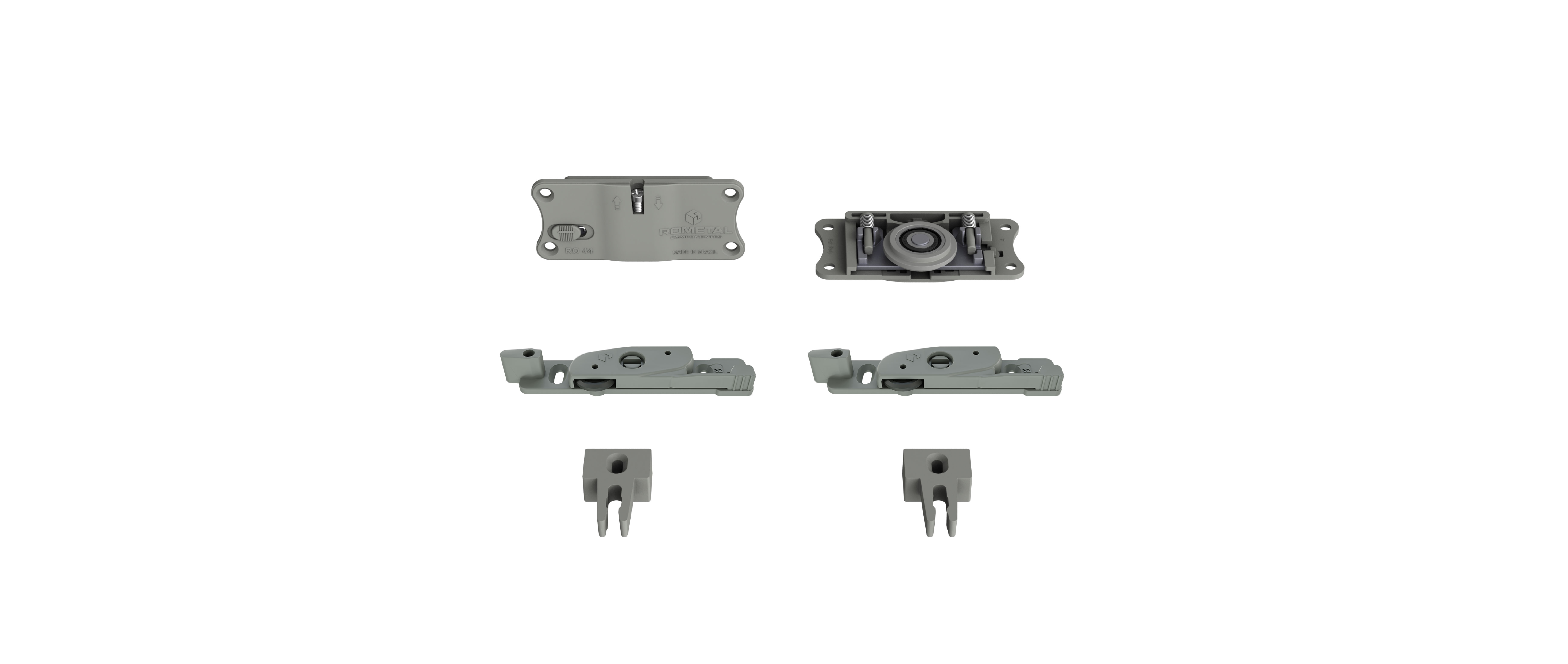 Sistema com regulagem fácil e prática. Possui molas antidescarrilamento e pode ser utilizada em portas de até 60 kg.