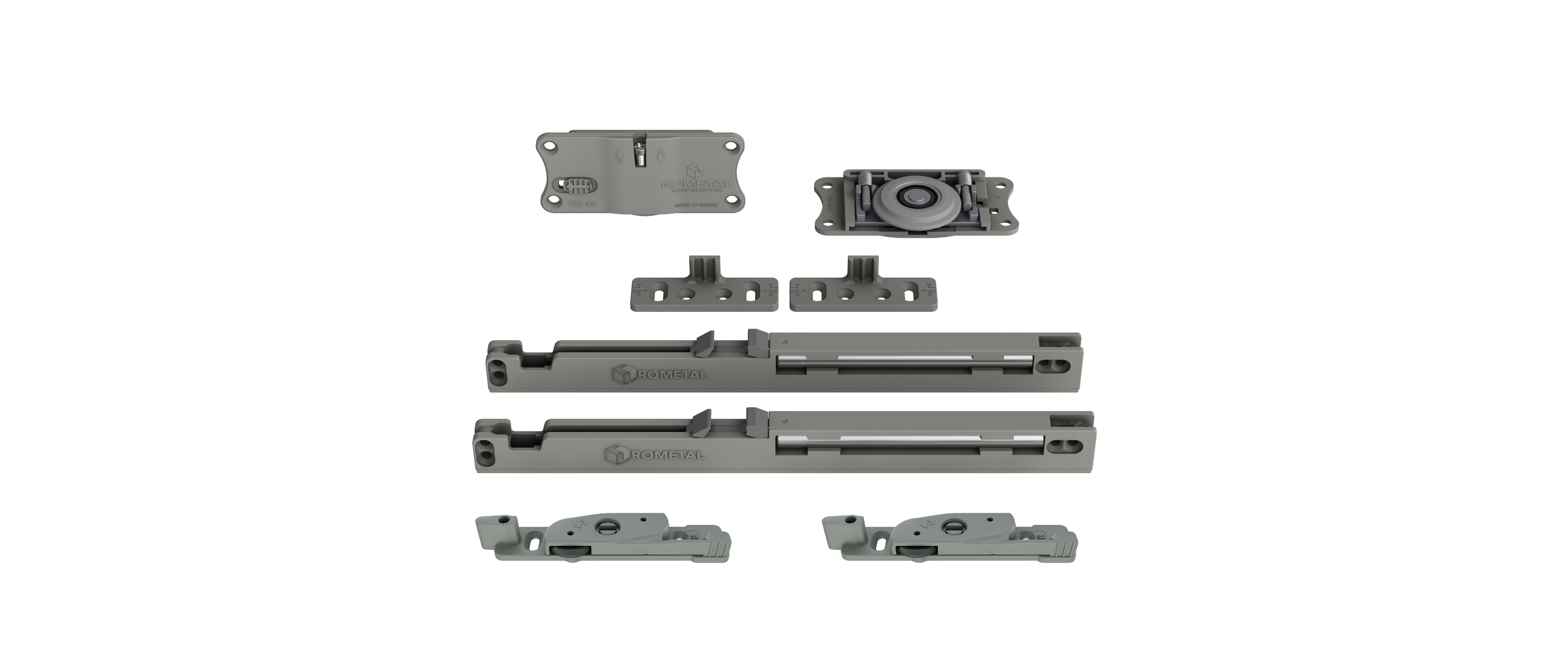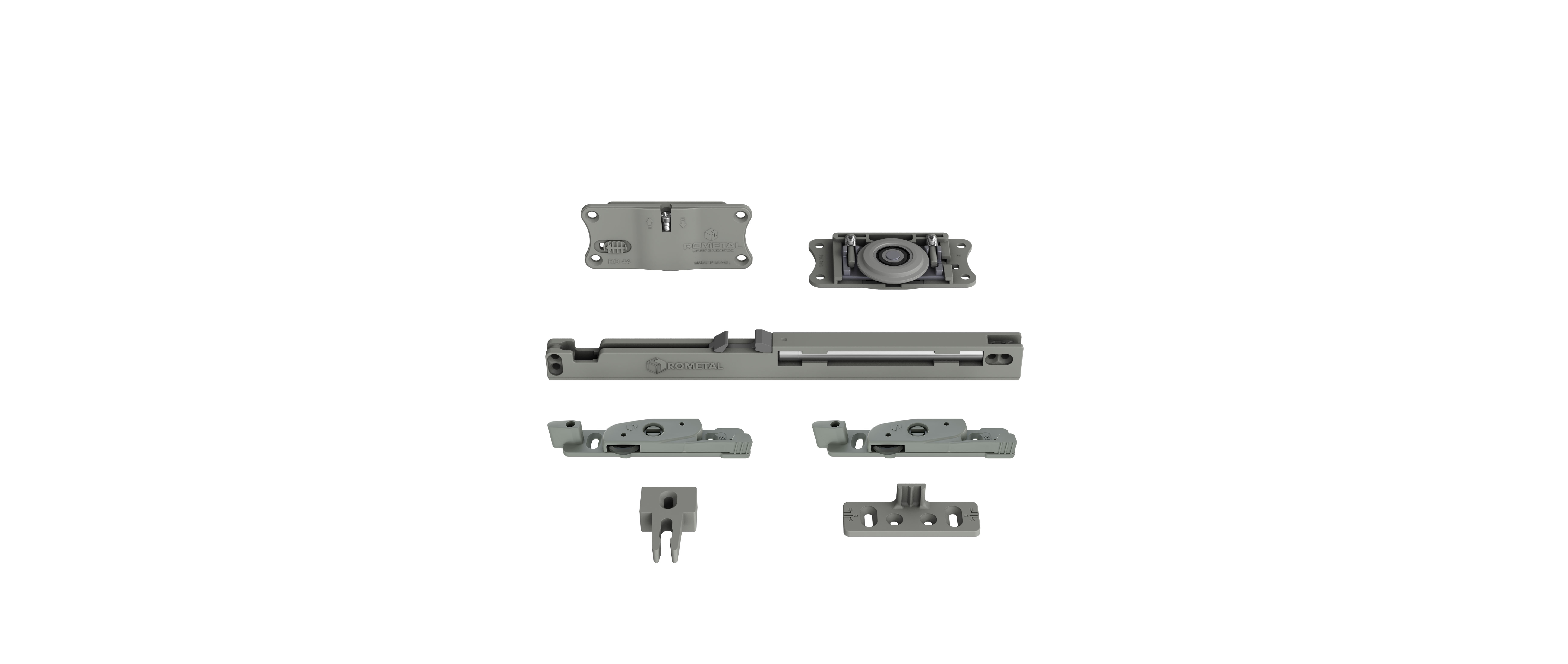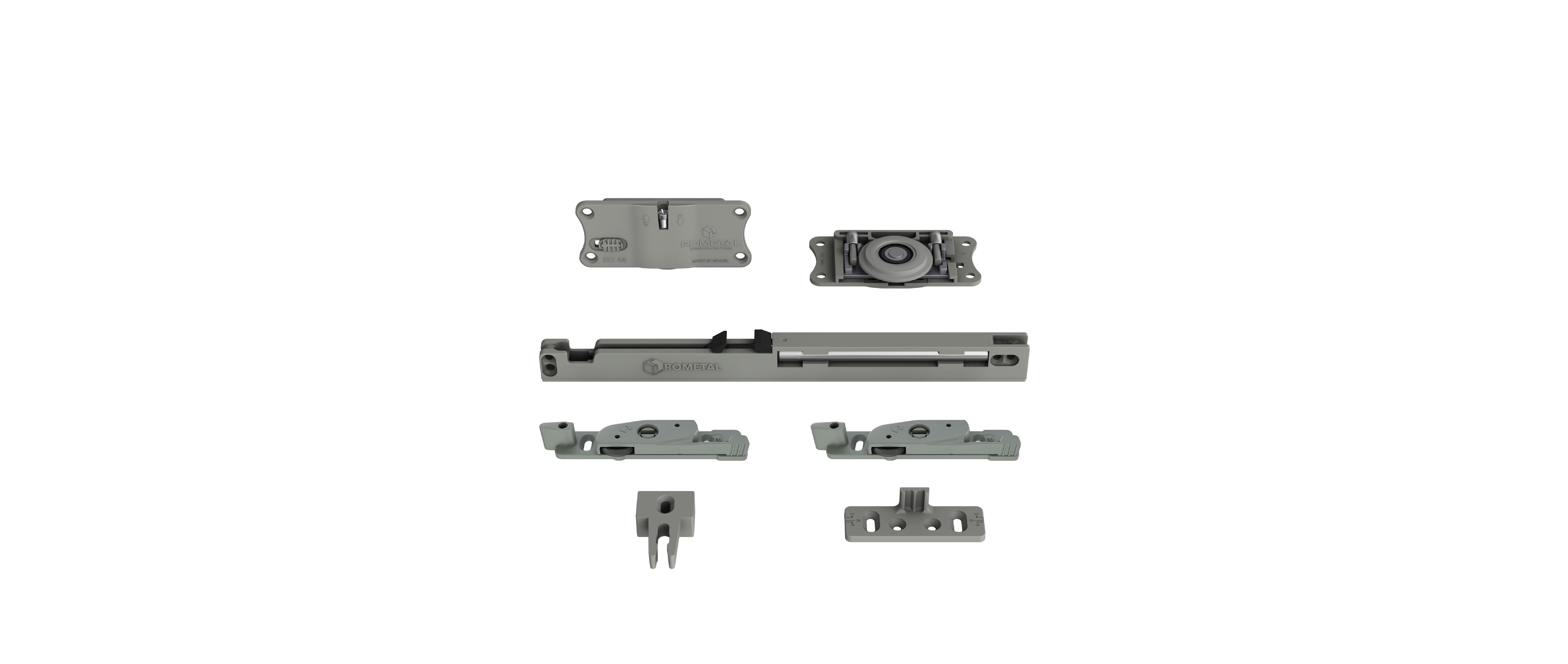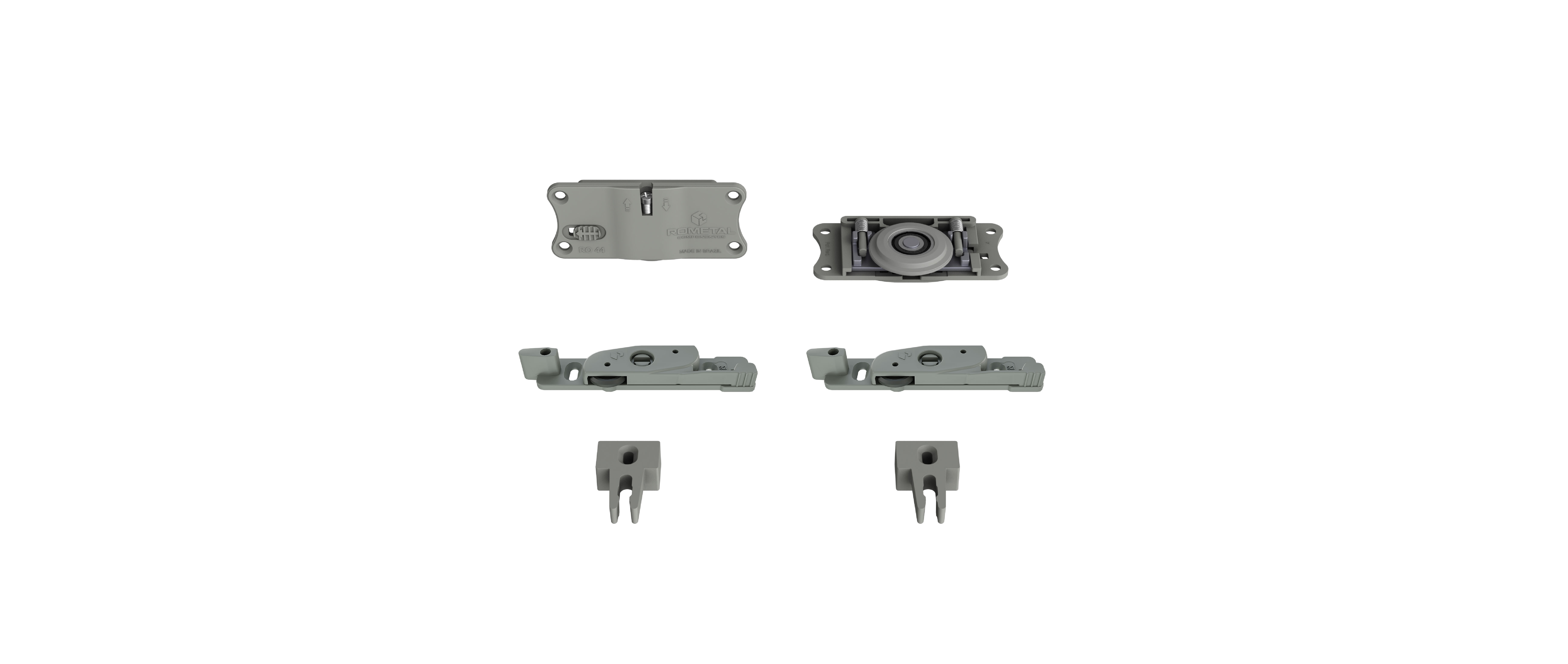 Sistema com regulagem fácil e prática. Possui molas antidescarrilamento e pode ser utilizada em portas de até 60 kg.