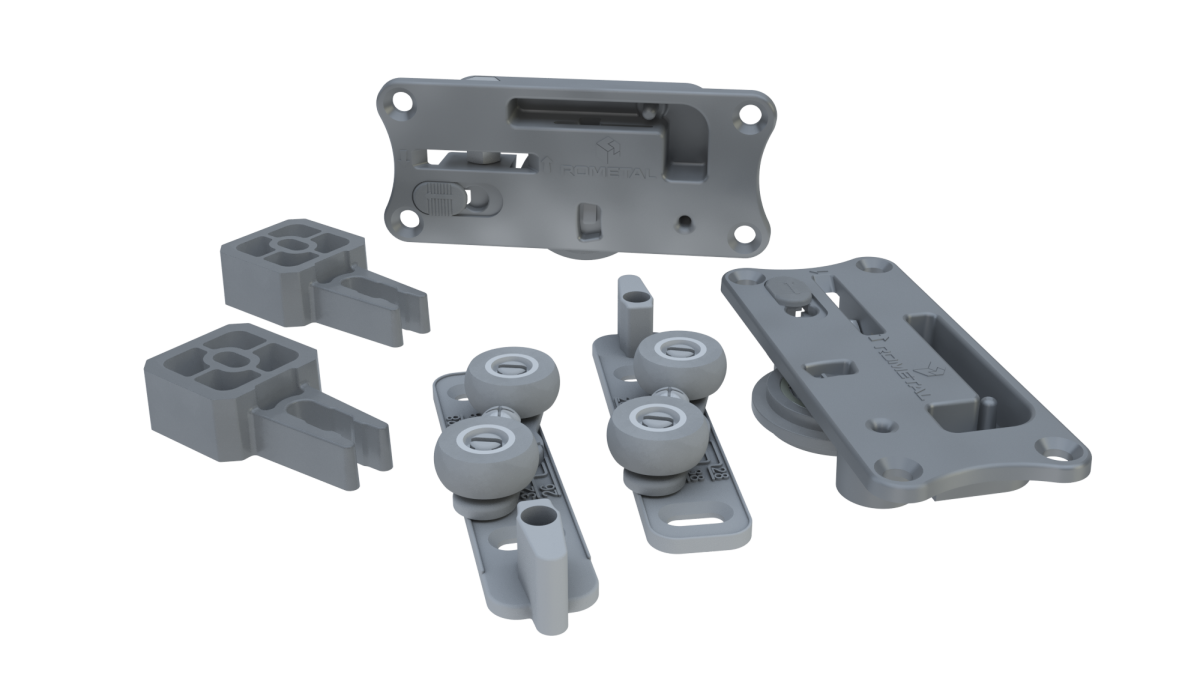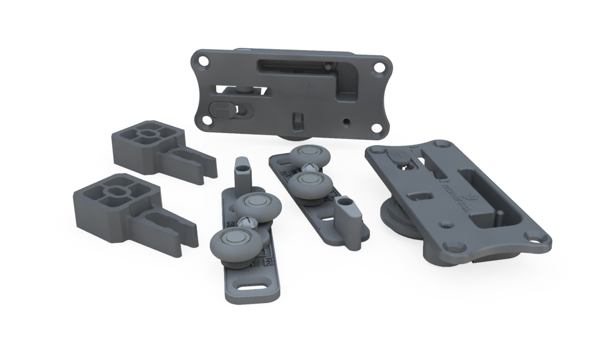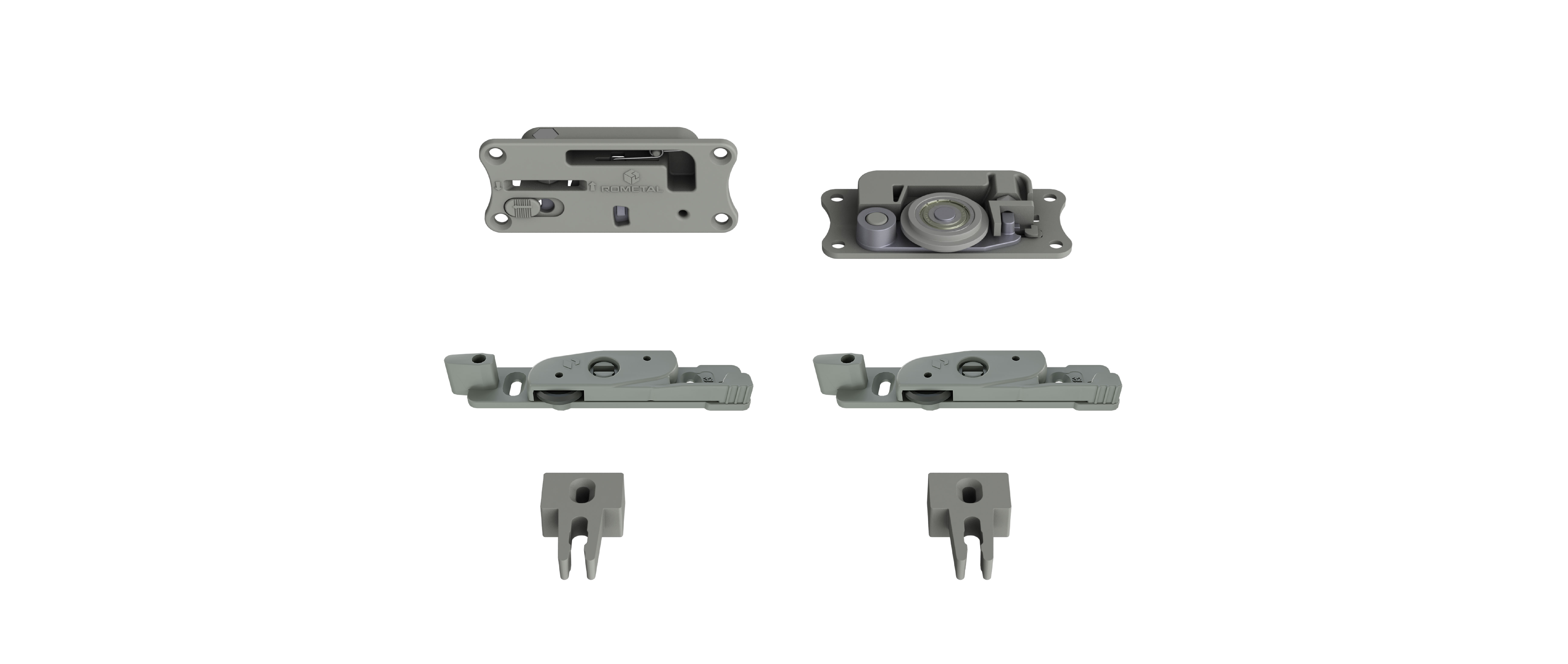 Sistema com molas exclusivas e modernas que impedem o descarrilamento das portas. Possui trava frontal que, quando movimentada, tem função de acionamento ou travamento das molas.